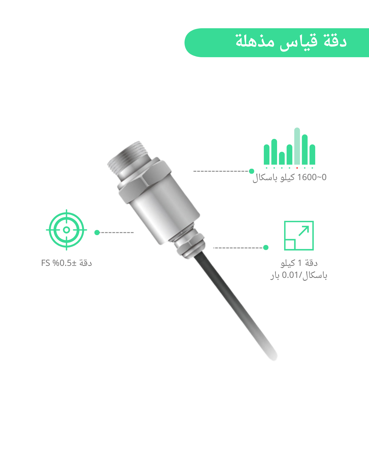 - دقة قياس ضغط الأنابيب أقل من ±0% من FS