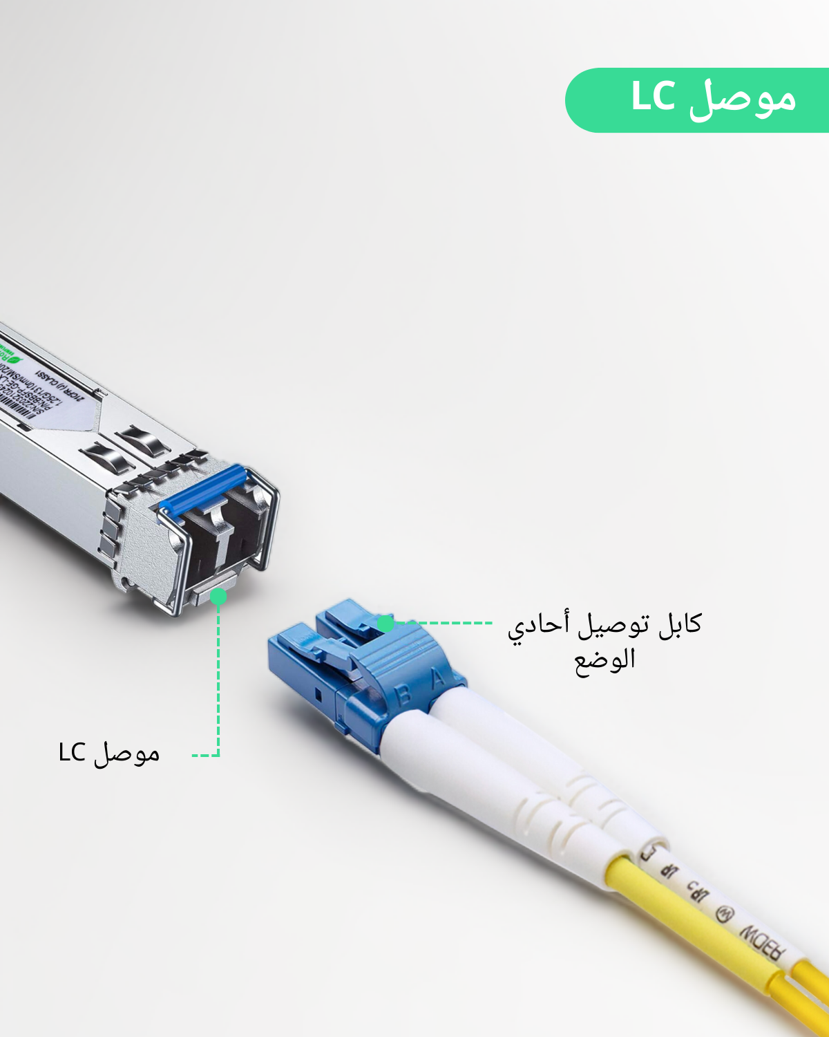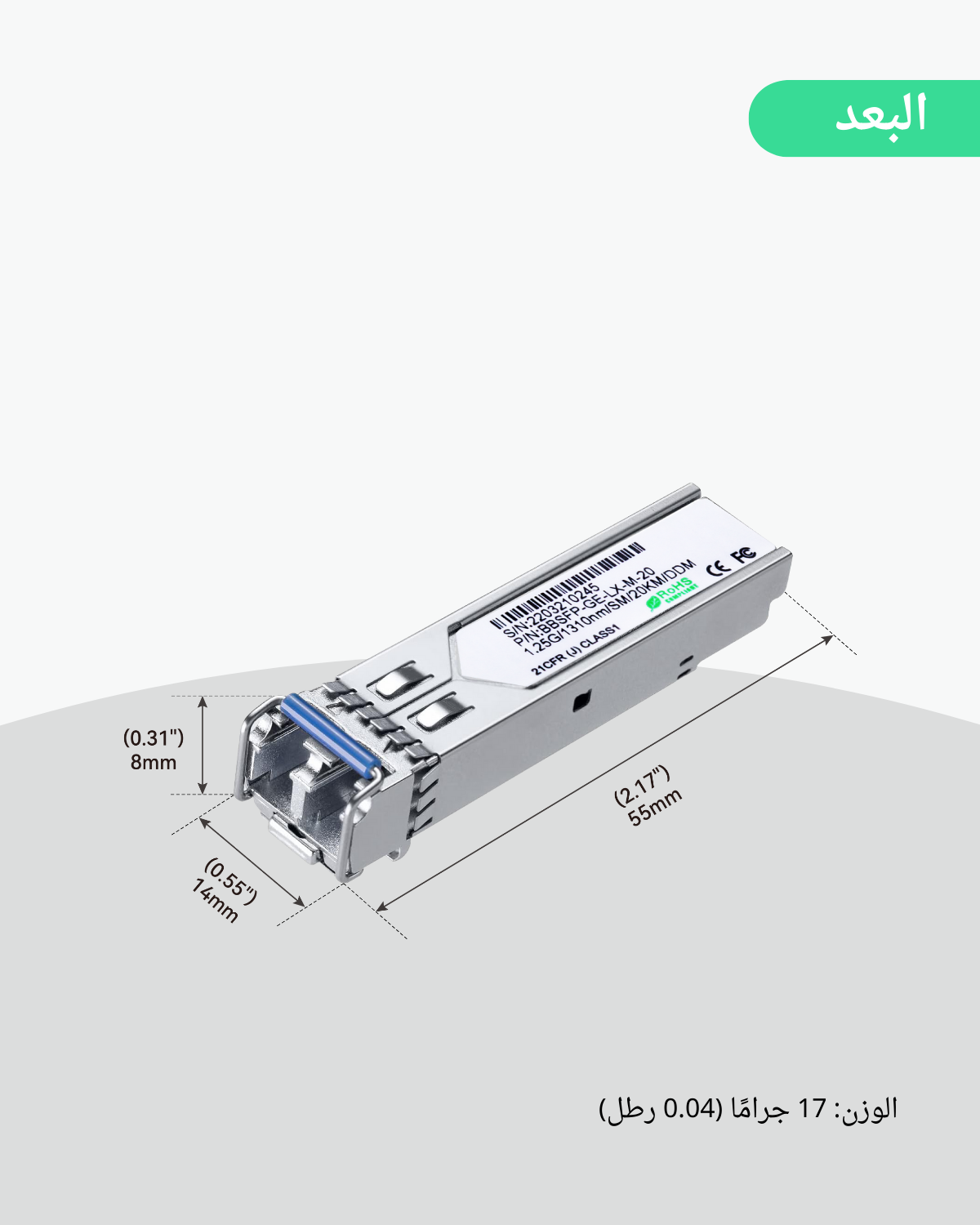 جهاز إرسال واستقبال وحدة 1.25G SFP، معيار 1000Base-LX، بطول 1310 نانومتر SMF، موصل ألياف مزدوج LC.