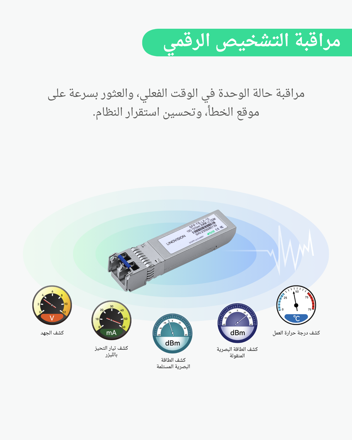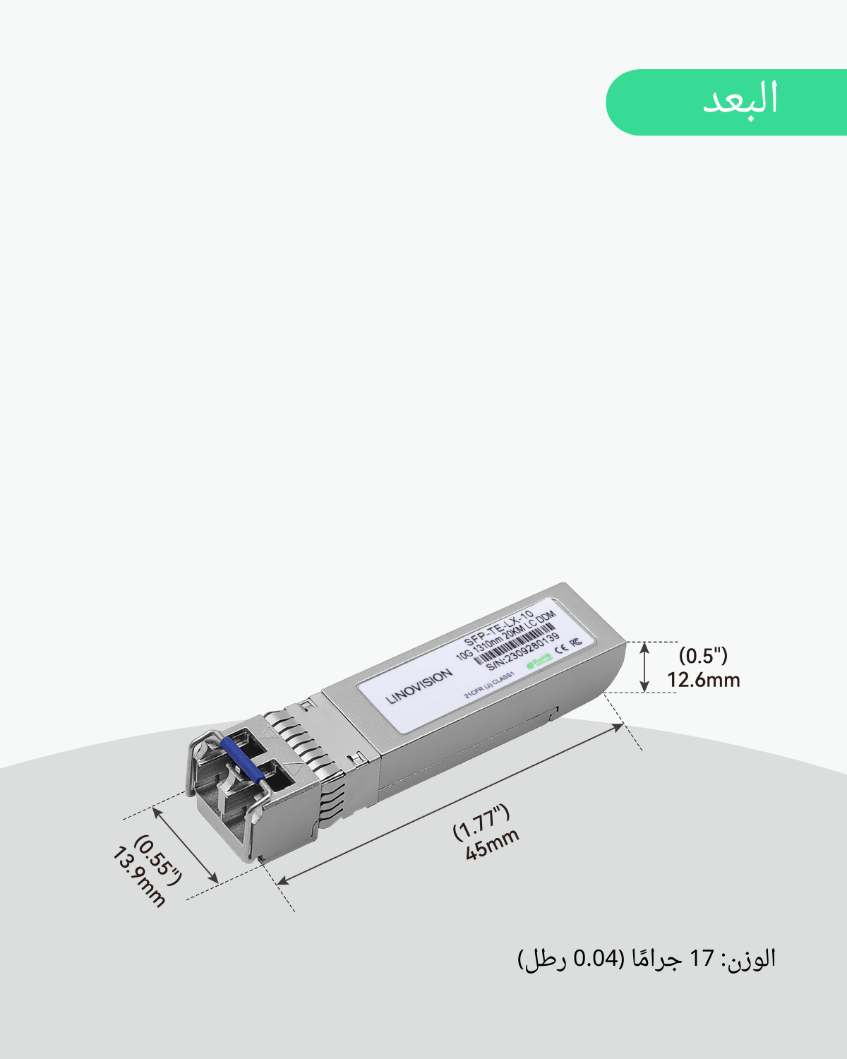 - تعمل وحدة الألياف بكفاءة مع المحول، والراوتر، ومحول الوسائط، وغيرها من منافذ +SFP البصرية بسرعة 10G.
