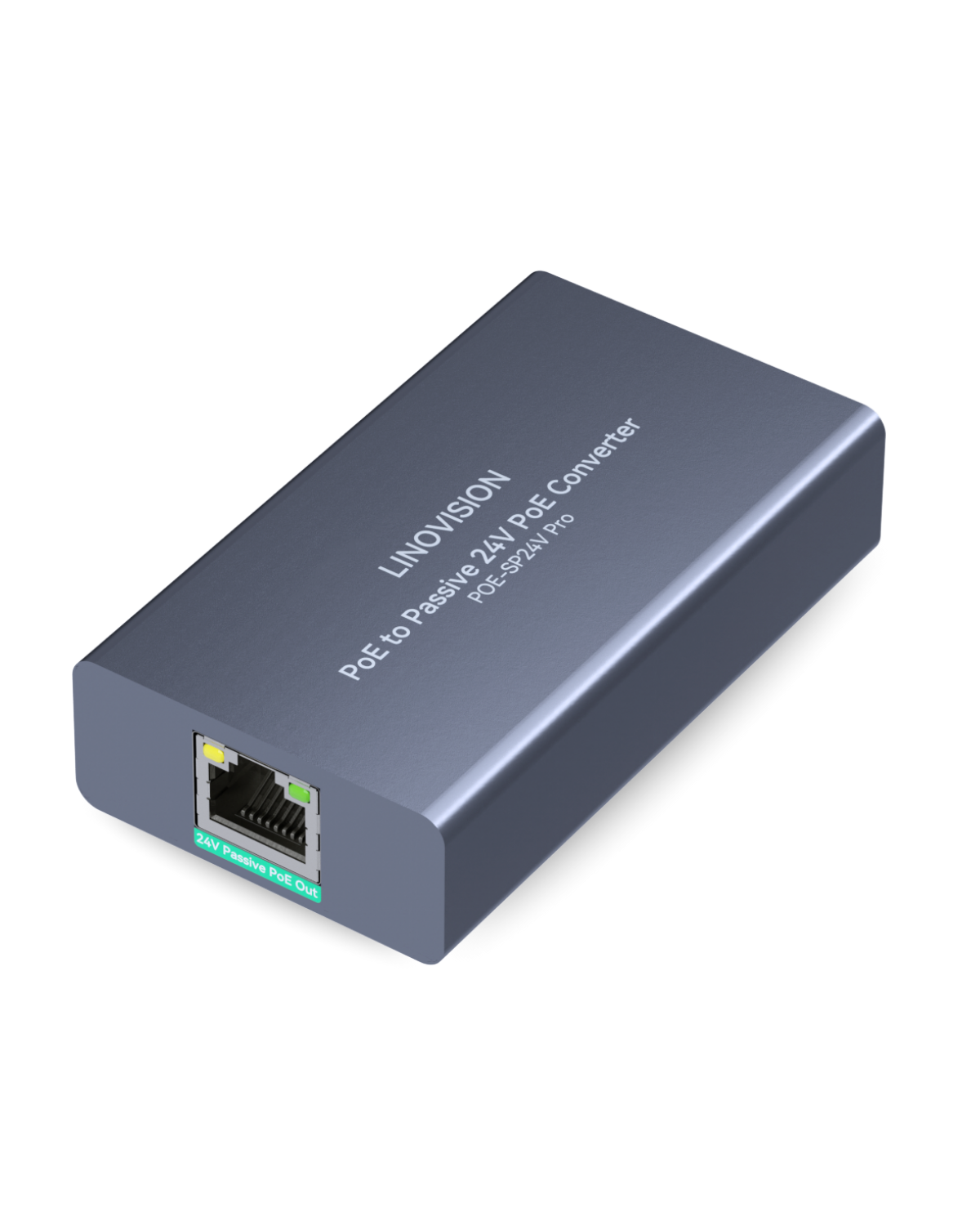- محول PoE السلبي 24V – يقوم هذا المحول بتحويل PoE النشط IEEE802.3af/at إلى خرج PoE سلبي 24V (تعيين الدبوس: -20W، 45+/78).