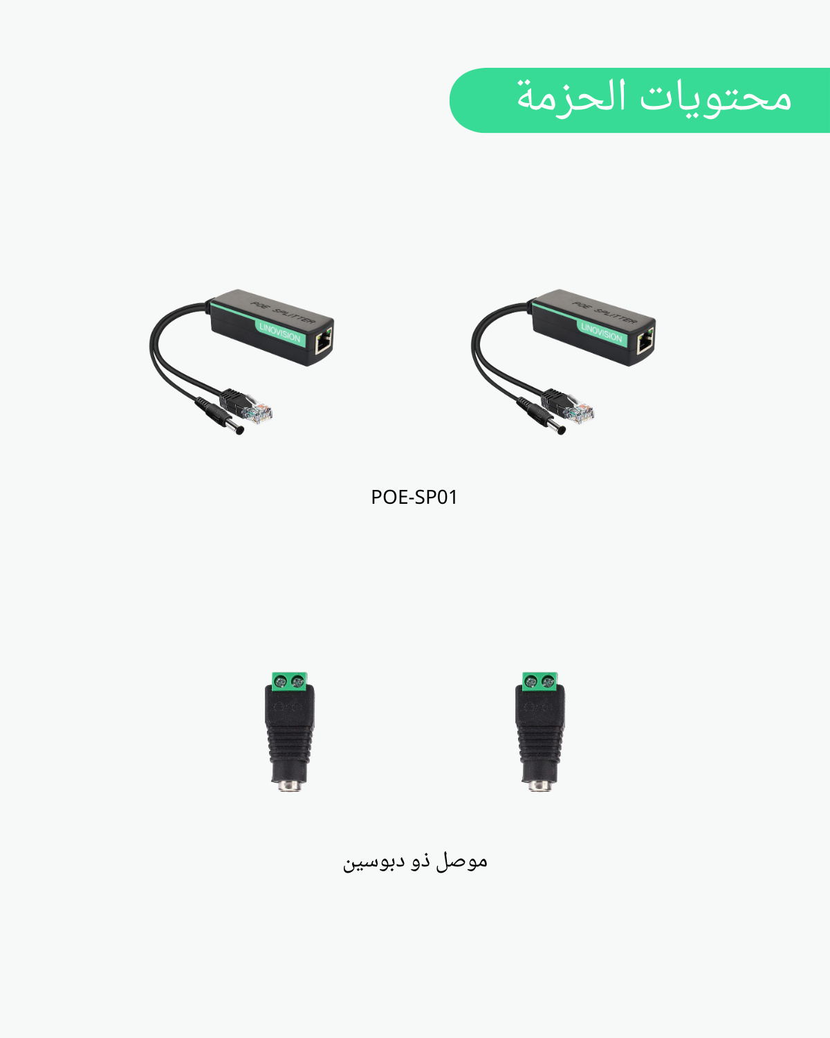 - موزع DC12V POE – يقوم بتقسيم طاقة IEEE802.3af/at POE إلى بيانات بسرعة 10/100Mbps ومخرجات طاقة DC12V.