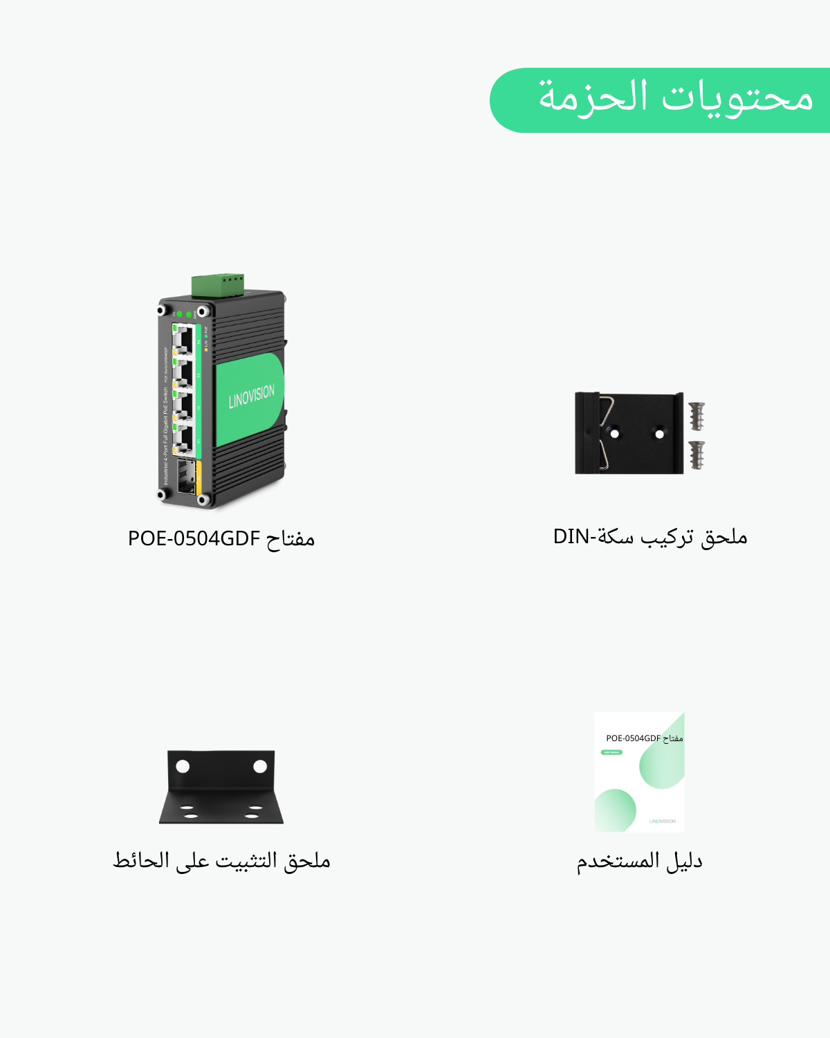 • جيجابت كامل: يوفر 4 منافذ PoE إيثرنت 10/100/1000Base-T وفتحة SFP واحدة 1000Base-X (وحدة SFP غير متضمنة). جميع منافذ PoE متوافقة مع معيار IEEE802.3af/at. إجمالي ميزانية PoE 120W (مدخل DC24V/DC48V) أو 60W (مدخل DC12V).