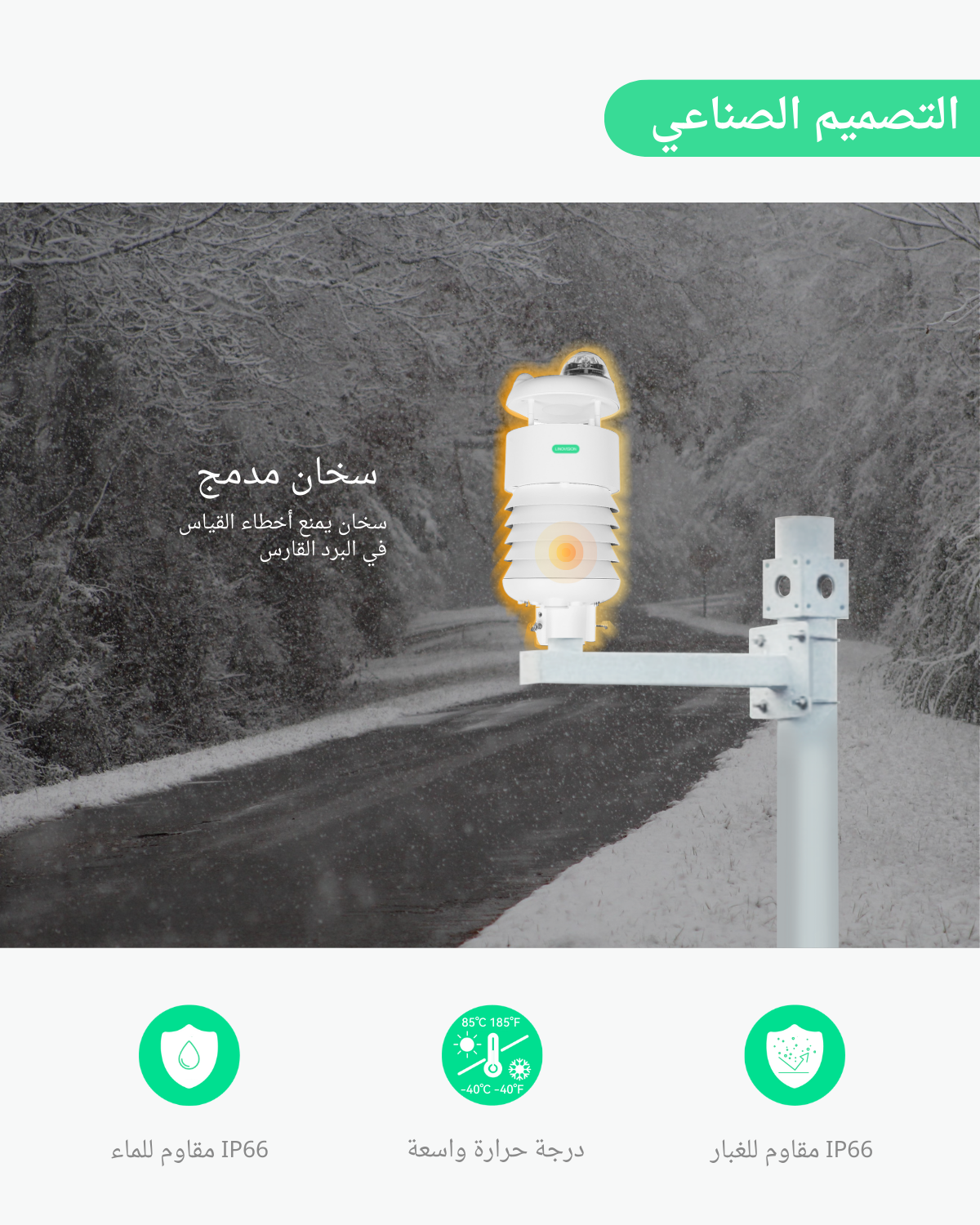 - محطة الطقس المتكاملة - صُمم نظام مراقبة الطقس هذا لمراقبة مختلف الظروف الجوية بشكل مستمر، بما في ذلك درجة حرارة الهواء، والرطوبة النسبية، والضغط الجوي، وشدة الإضاءة، وشدة هطول الأمطار، وسرعة الرياح، واتجاهها.