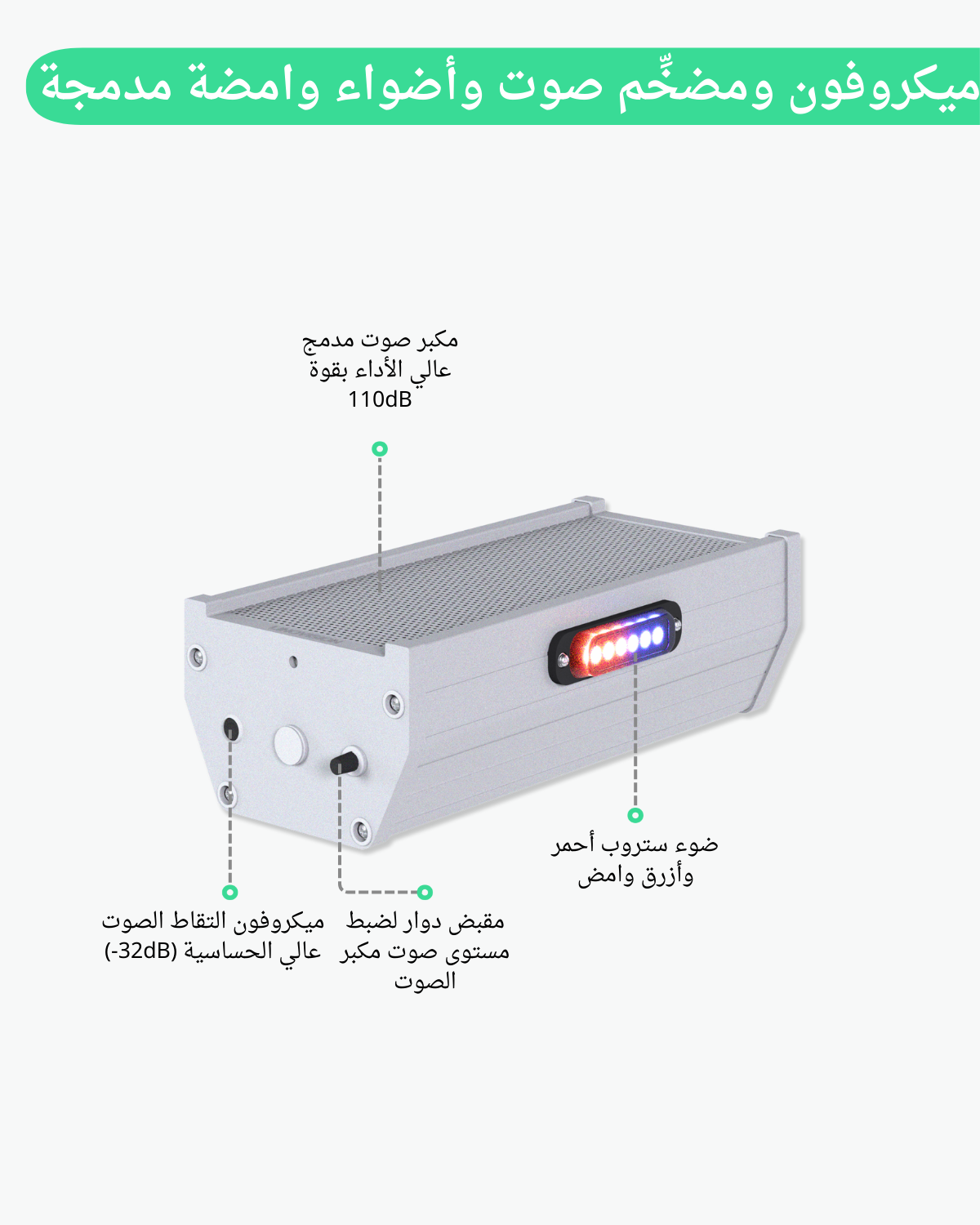 يُعدّ مكبر الصوت الخارجي هذا ملحقًا رائعًا لأنظمة كاميراتنا العاملة بالطاقة الشمسية من سلسلتي GO SOLO وGO BOX. عند دمجه مع كاميراتنا، يدعم التحدث ثنائي الاتجاه والتحذير الصوتي المُخصّص استنادًا إلى تقنية الذكاء الاصطناعي لتصفية الأشخاص/المركبات. وهو مفيد جدًا في المتنزهات الوطنية، وبوابات الدخول، ومواقف السيارات، وغيرها.