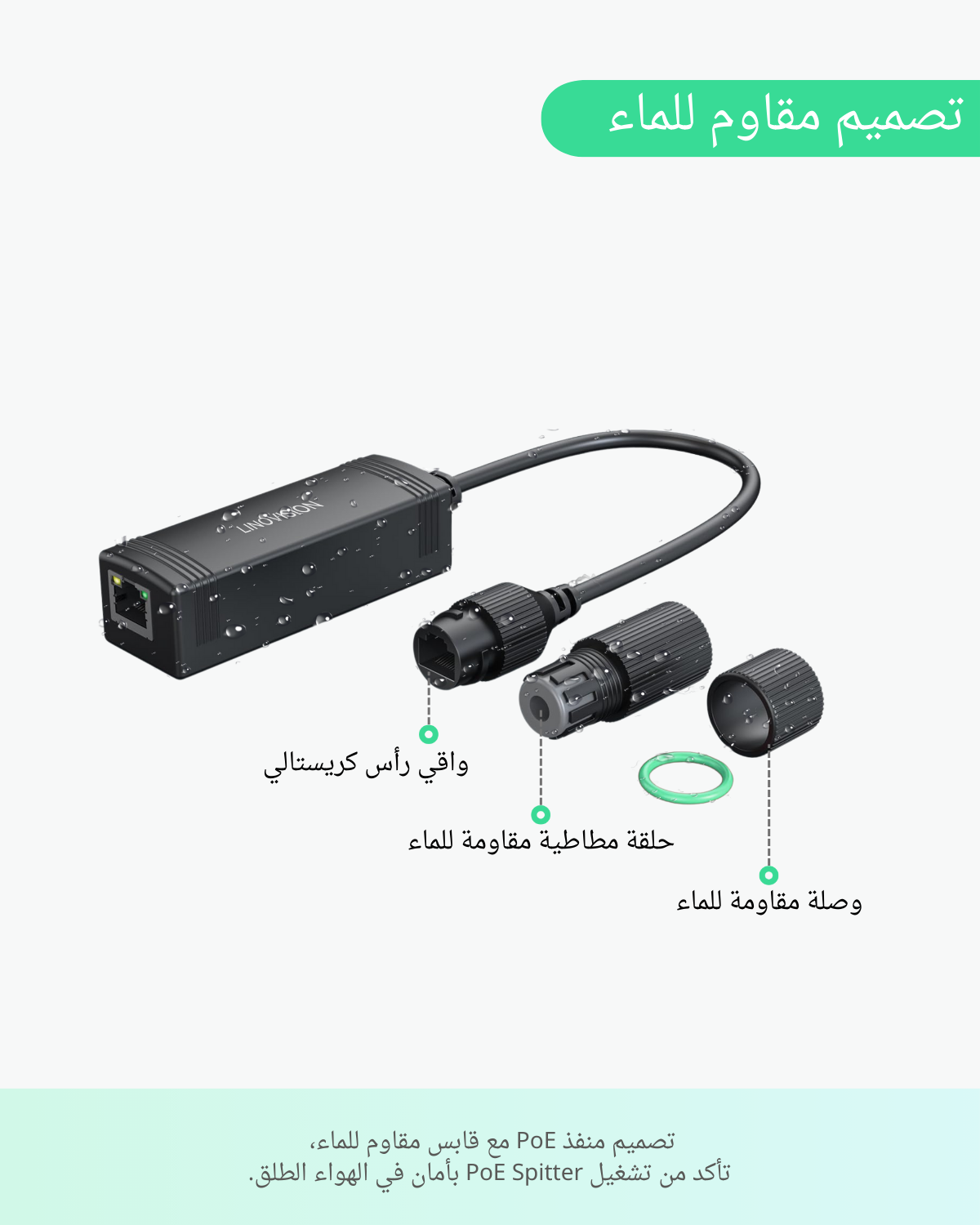 - مُصمّم للاستخدام الخارجي - يأتي مع ملحقات مقاومة للماء، مما يجعله مثاليًا للإعدادات الخارجية مثل كاميرات المراقبة، والجسور اللاسلكية، ونقاط الوصول الخارجية. يوفر أداءً مستقرًا في مختلف الظروف الجوية.