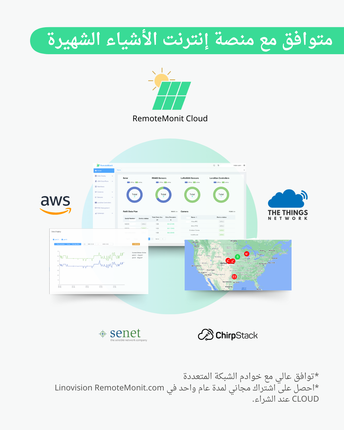 كما أنها تُغطي المناطق الداخلية العمياء. وقد تم دمج خوادم الشبكة الرئيسية (مثل TTN وChirpstack، إلخ)، وخادم شبكة مدمج، وهي متوافقة مع Linovision IoT Cloud لسهولة النشر.