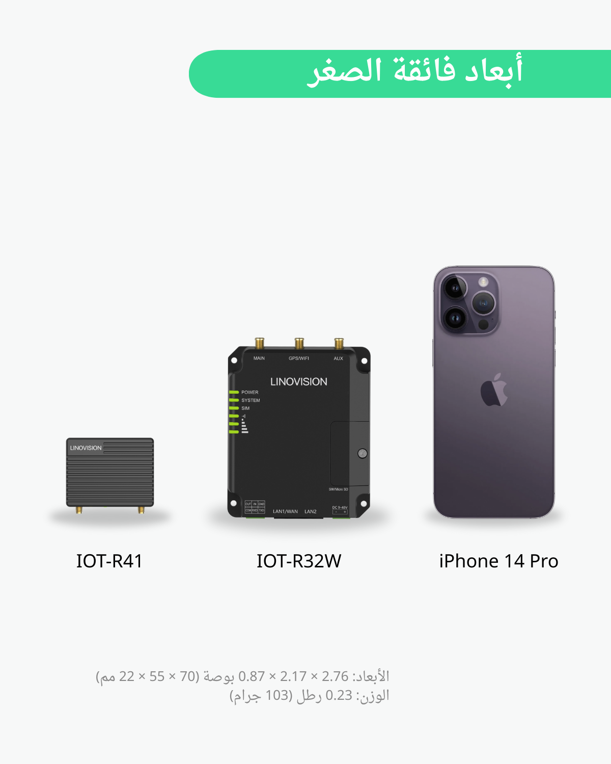 - راوتر خلوي فائق الصغر - أبعاده بحجم راحة اليد (70×55×22 مم)، مناسب للتركيبات المدمجة الصغيرة.