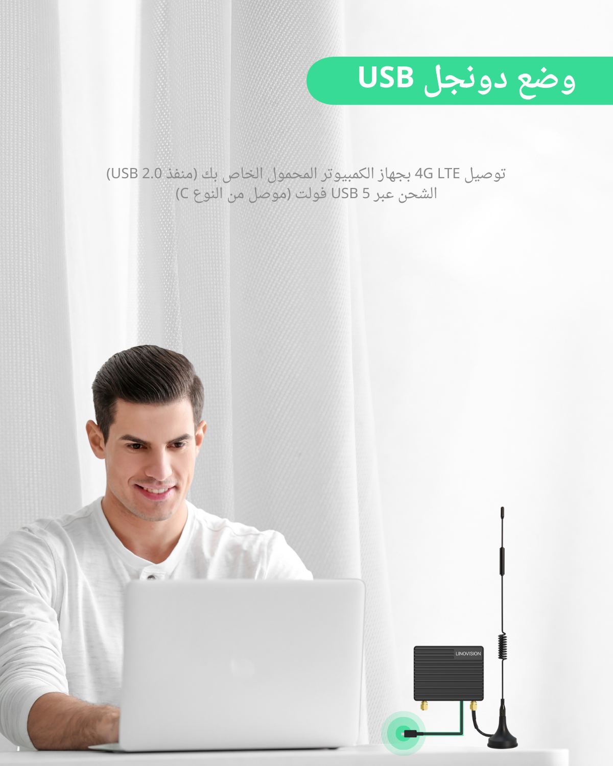 - وضع دونجل USB - وصلة 4G LTE سهلة التركيب والتوصيل بالكمبيوتر المحمول أو الكمبيوتر الشخصي عبر منفذ USB من النوع C.