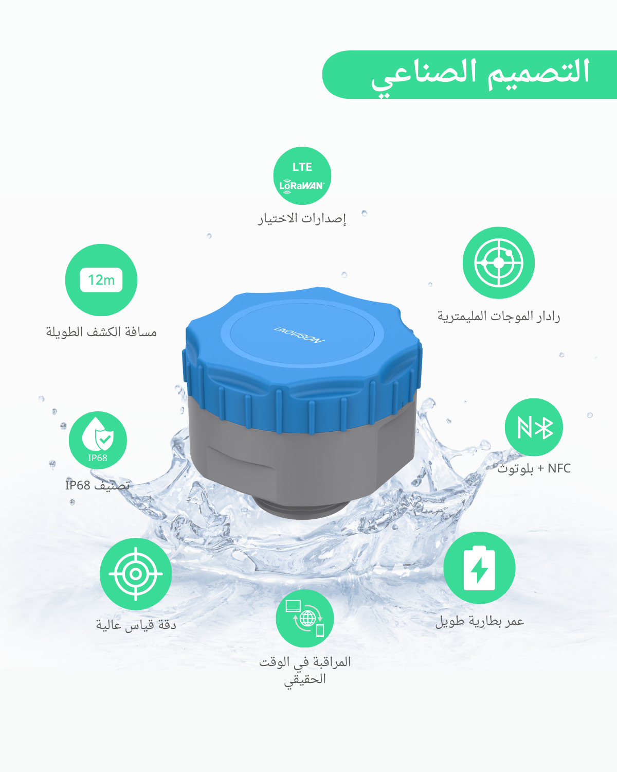 IOT-S510RDL هو مستشعر مسافة/مستوى راداري غير تلامسي يعتمد تقنية رادار الموجات المليمترية. من خلال قياس إشارات الموجات المليمترية بترددات أعلى، يوفر أداءً أكثر استقرارًا على مسافات أطول، ويتأثر بشكل أقل بالظروف البيئية. يمكنه اكتشاف المسافة بين المستشعر والسوائل من مختلف الأنواع، دون أن يتأثر بدرجة الحرارة أو الغبار أو المكثفات، إلخ. بفضل مقاومته للماء وفقًا لمعيار IP68 وهيكله المحكم، يمكنه تحمل أسوأ الظروف البيئية، مع الحفاظ على دقة القياس، ولا يتطلب صيانة دورية.
