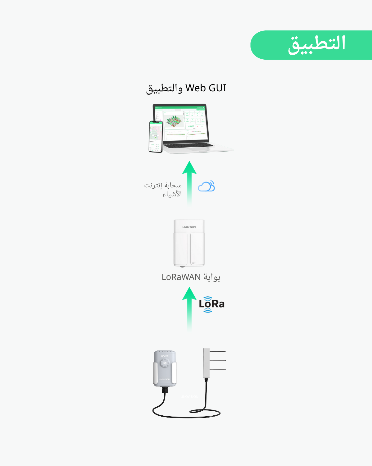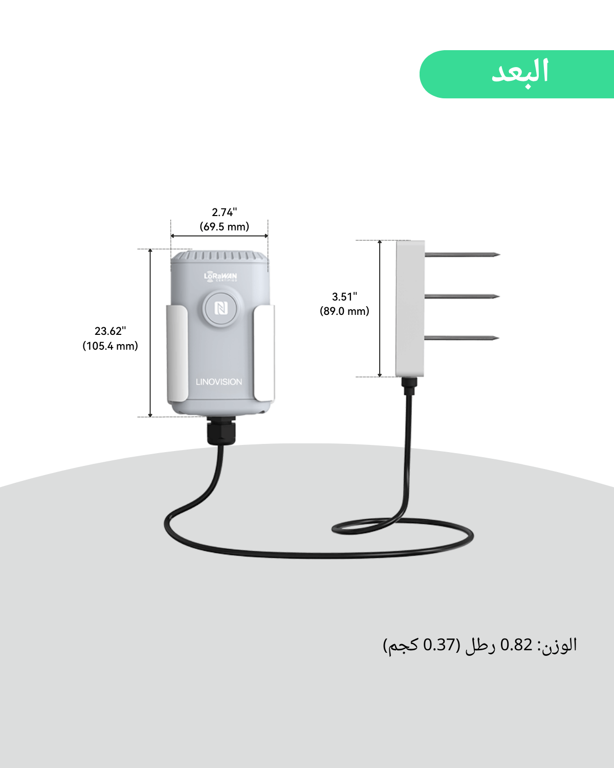 يوفر مستشعر IoT اللاسلكي LoRaWAN مسبارًا خارجيًا لاستقبال معلومات دقيقة وفورية عن رطوبة التربة ودرجة حرارتها وملوحتها.